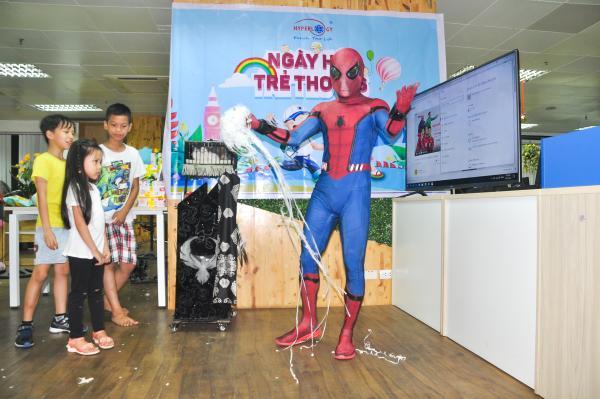 Bên cạnh bàn tiệc nhiều màu sắc đã bày biện sẵn sàng, năm nay các bé được gặp chú Spiderman cùng màn ảo thuật đặc sắc, mang lại nhiều sự trầm trồ, tò mò và tiếng cười vui vẻ. Các bạn cũng được tự do thể hiện khả năng của bản thân qua các màn đọc thơ, hát, nhảy,… Cuối chương trình, bạn nào cũng 1 món quà to quà nhỏ cầm về, trọn vẹn và đong đầy niềm vui cho một “ngày hội trẻ thơ” của chính mình.
