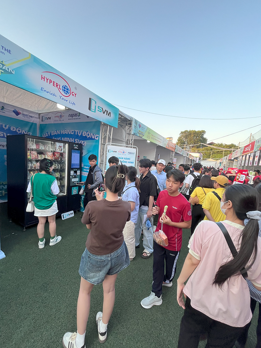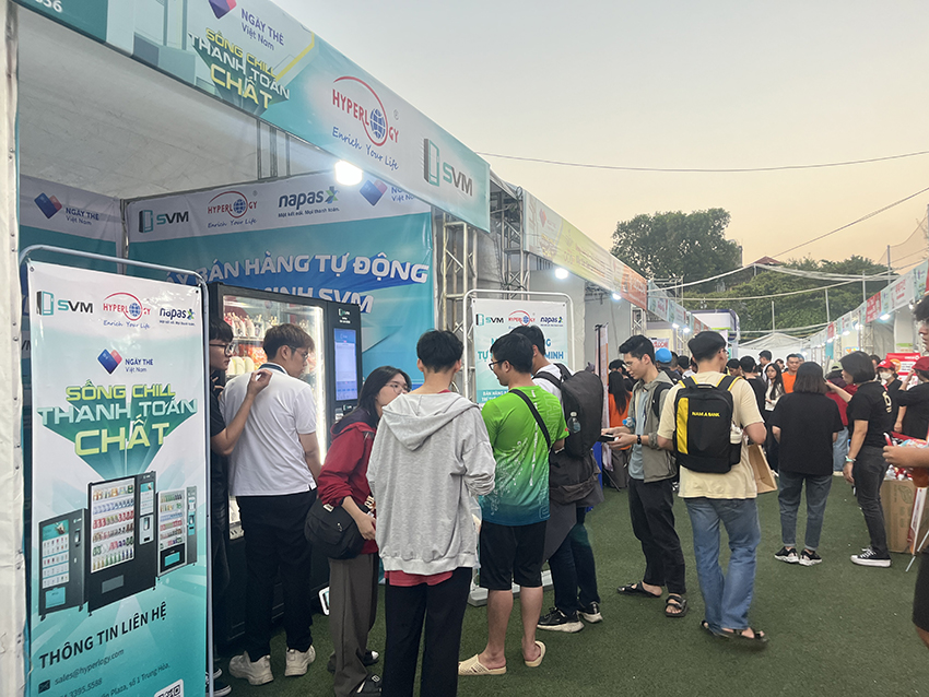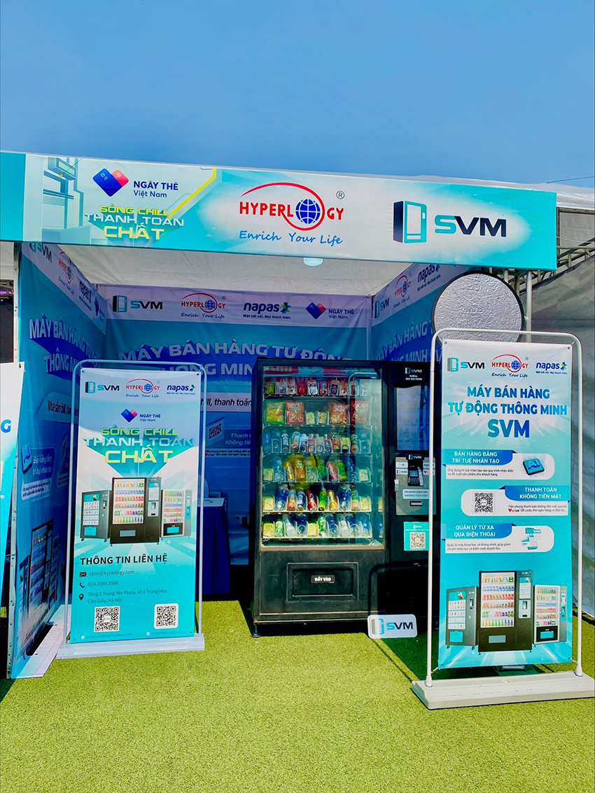 Trong hai ngày cuối tuần 05 và 06/10 vừa qua, sự kiện Ngày thẻ Việt Nam 2024, do Báo Tiền Phong phối hợp với Công ty Cổ phần Thanh toán quốc gia Việt Nam (NAPAS) đồng tổ chức dưới sự chỉ đạo nội dung của Ngân hàng Nhà nước Việt Nam, đã diễn ra thành công tốt đẹp với sự tham gia của hàng loạt ngân hàng, tổ chức tài chính uy tín cùng với nhiều gian hàng trong các lĩnh vực khác nhau như ẩm thực, mua sắm,… Tại đây, gian hàng của Hyperlogy đã thu hút sự chú ý của đông đảo các bạn trẻ với giải pháp thanh toán không tiền mặt của máy bán hàng tự động SVM. Đây cũng là năm thứ ba liên tiếp, Hyperlogy đồng hành cùng đối tác NAPAS trong chuỗi hoạt động Ngày thẻ, thúc đẩy thanh toán không tiền mặt tại Việt Nam.