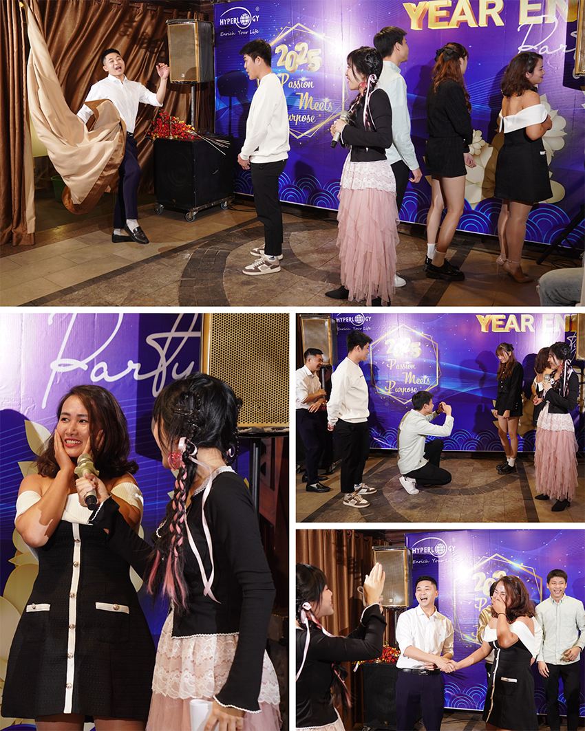 Vừa qua, ngày 18/01, Hyperlogy đã tổ chức buổi tiệc cuối năm Year End Party 2024 (YEP 2024) với chủ đề “Passion Meets Purpose“, cùng nhiều kỷ niệm đáng nhớ và những trò chơi vô cùng vui nhộn. Buổi tiệc là dịp để toàn thể công ty cùng nhau nhìn lại hành trình đã qua, ghi nhận những nỗ lực không ngừng nghỉ của mỗi cá nhân trong công ty và cùng nhau hướng tới những mục tiêu mới trong năm 2025.