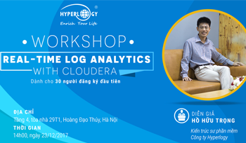 Ngày 23/12 vừa qua, công ty Hyperlogy đã tổ chức thành công Workshop mang tên “Real-time Log Analytics with Cloudera” – Thực hành thực tế Big Data dựa trên một bài toán thực tế là Log Analytics. Sự kiện được diễn ra tại văn phòng công ty – Tầng 4, tòa nhà 29T1, Hoàng Đạo Thúy, Cầu Giấy, Hà Nội. Workshop nhận được sự quan tâm từ nhiều đối tượng đang làm việc trong lĩnh vực CNTT như lập trình viên, kỹ sư tích hợp, quản trị viên CSDL,…