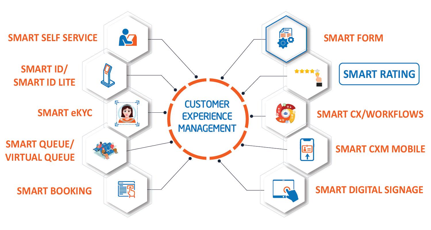 Đặc biệt, khi được kết hợp cùng các giải pháp trong bộ ứng dụng Quản lý trải nghiệm khách hàng đa kênh của Hyperlogy, Smart Rating tích hợp cùng Smart CXM Mobile, Smart Self Service, Smart Booking, Smart Queue,… tạo nên một hệ thống quản lý thông minh và tập trung, nâng cao trải nghiệm khách hàng trước, trong và sau khi sử dụng dịch vụ của doanh nghiệp.