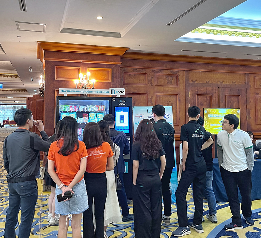 Tham gia sự kiện Internet Day 2023, Máy bán hàng tự động thông minh SVM của Hyperlogy gây ấn tượng mạnh cho các chuyên gia, doanh nghiệp và người yêu công nghệ bởi khả năng đa dạng các phương thức thanh toán không tiền mặt và bán hàng bằng trí tuệ nhân tạo (AI).